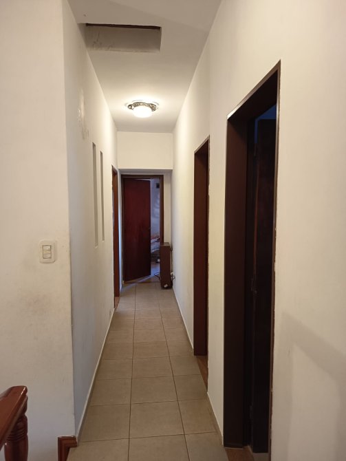 Terreno irregular de 9m70 x 45m00, con acceso por un pasillo de 1m50 x 20m00, que luego se abre a un lote de 9m70 x 25m00, donde se encuentra la vivienda.